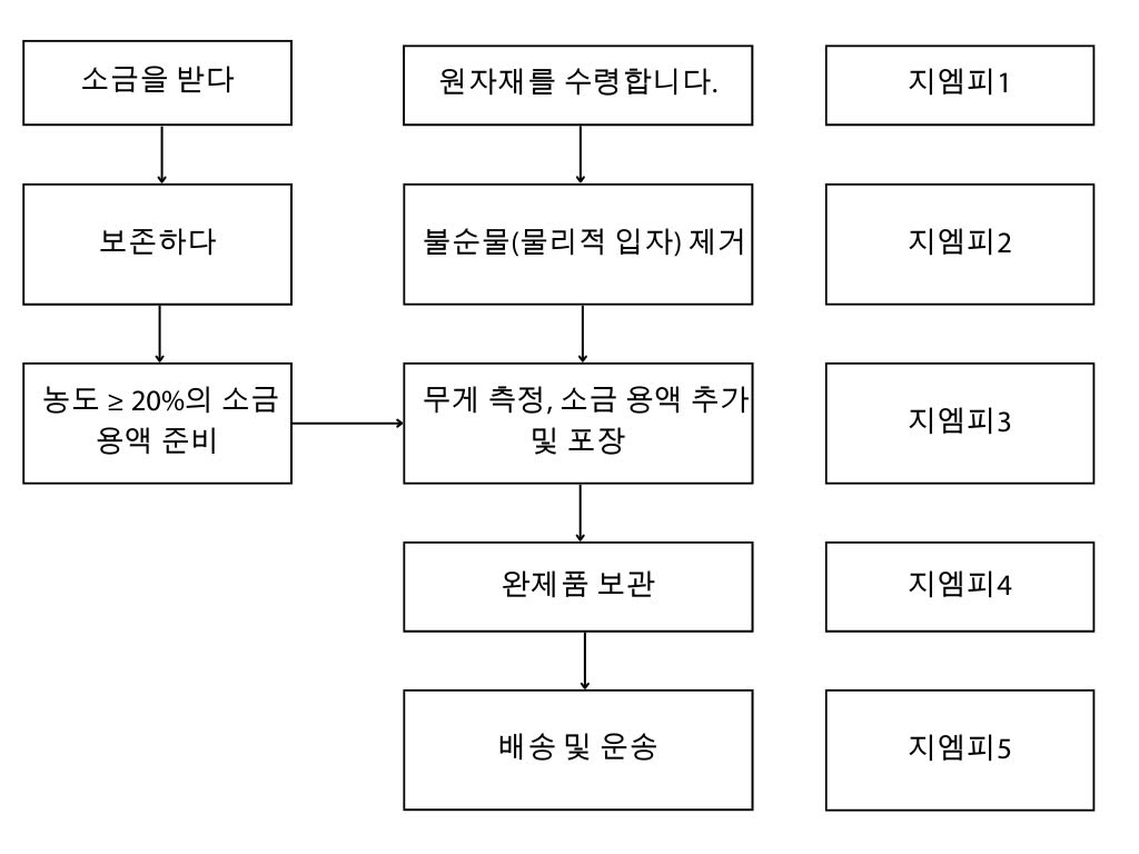 | 무게 측정, 소금물 첨가 및 포장 | 각 통의 무게는 고객의 특정 요구 사항에 따라 18kg 또는 20kg이 될 수 있습니다. 소금 용액을 추가하고 통을 밀봉한 다음 라벨을 붙입니다. 우리는 소비자 사용에 적합한 승인된 공급업체의 소금을 사용하고 물은 베트남 표준을 충족합니다. 소금 용액 농도 > 20%. |